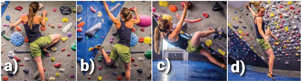 El talón se usa para aplicar presión a la presa o superficie, lo cual permite llevar la rodilla a flexión gracias a una fuerte contracción de los isquiotibiales (fig. 4). Esto también provoca que la rodilla vaya a rotación lateral y a varo, junto a una rotación lateral de la cadera, aplicando gran carga en la rodilla y poniendo en riesgo el sector posterolateral de la articulación.