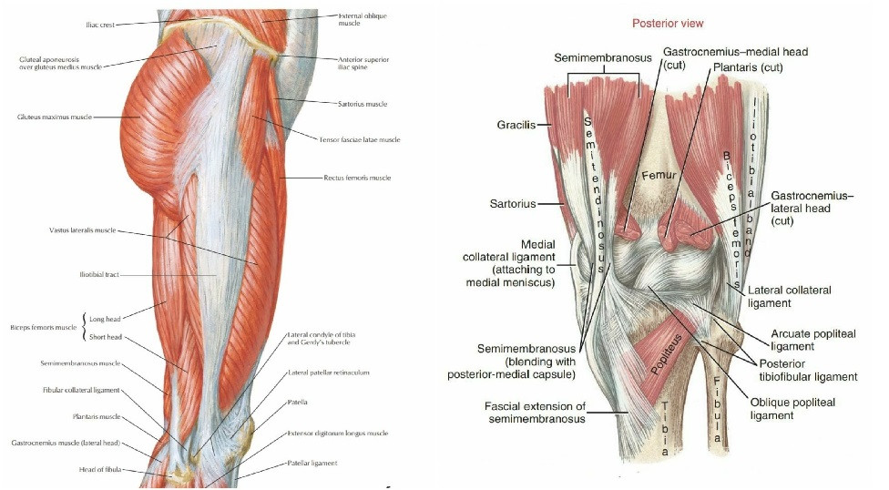 Otra estructura que ayuda a estabilizar la articulación es la Banda iliotibial (fig. 2), que corresponde a un tejido grueso que va desde la cadera hasta la tibia, permitiendo transferir y almacenar fuerza del Glúteo mayor y Tensor de la fascia lata (TFL) hacia la rodilla (siendo relevante al caminar y correr) (fig. 2) hacia la rodilla. Es importante mencionarlo debido a su función como estabilizador lateral de la rodilla, el cual opone resistencia cuando la rodilla va a varo (hacia afuera).