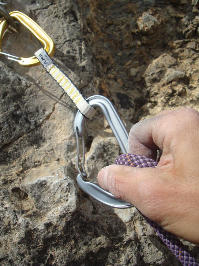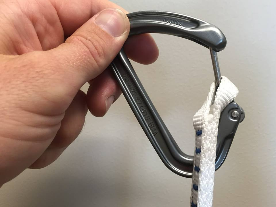 El principal problema de los mosquetones simples es que pueden llegar a trabajar abiertos reduciendo así su resistencia en una tercera parte.
