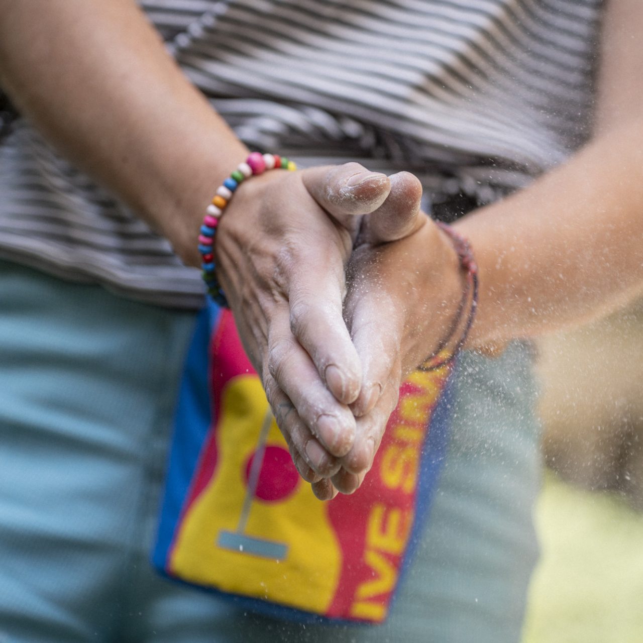 Y Magnesieras confeccionadas por Pichi Bags, producto especialmente dedicado a escaladores. “Usamos una construcción en paneles para minimizar los desechos de tela, reutilizando jeans e impermeables para la base, y retazos de poleras, vestidos y trajes de baño para su exterior”, explica Carolina Maragaño, Fundadora de Pichi Bags.