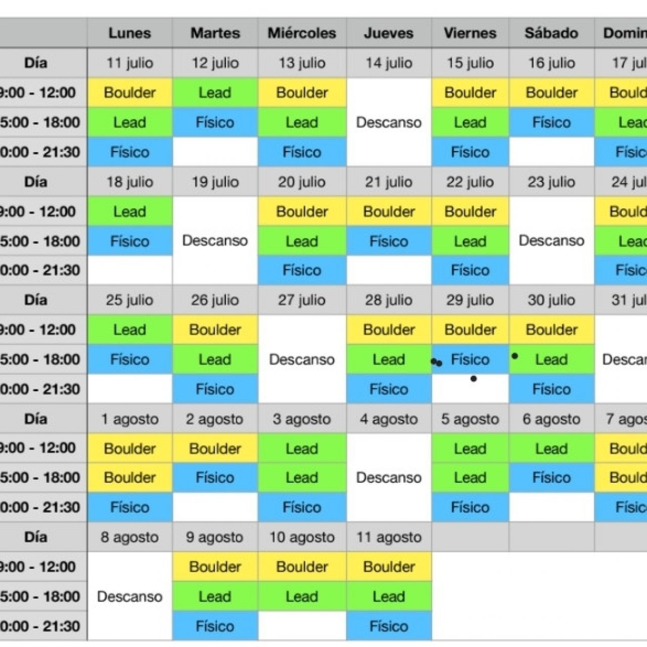de actividades deberá ser modificado para adaptar la carga de entrenamiento a sus