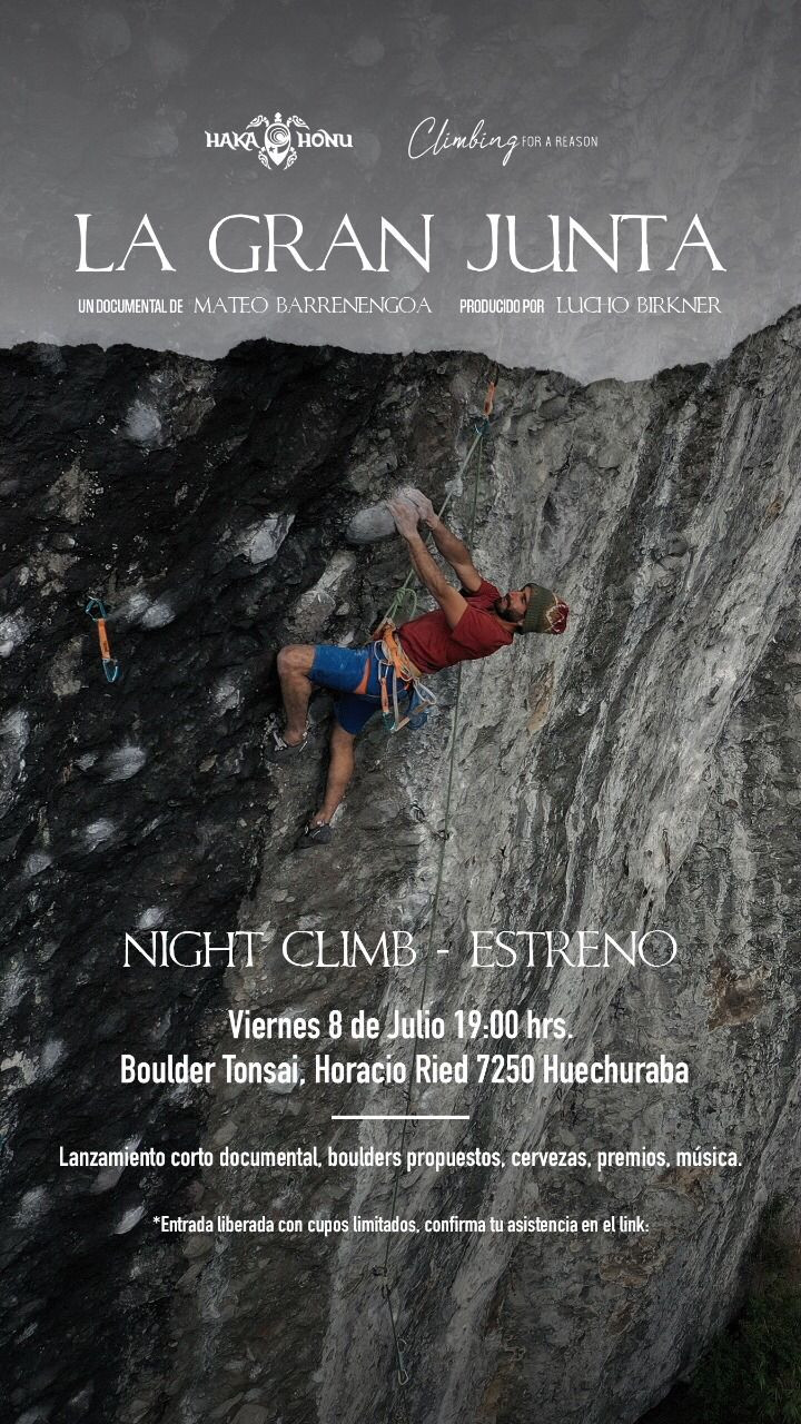 De cara al estreno del mini documental «La Gran Junta» este viernes 8 de julio en Boulder Tonsai. Es en el marco de este night climbing que se realizará en el mitico boulder, que los organizadores nos dejaron con el siguiente regalo: