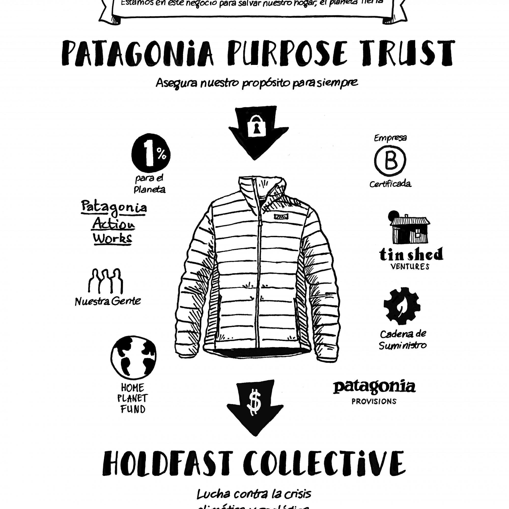 Patagonia seguirá siendo una Empresa B y continuará donando el uno por ciento de sus ventas a activistas de base cada año. El liderazgo de la compañía no cambia. Ryan Gellert mantendrá su posición de CEO y la familia Chouinard seguirá ocupando su puesto en el directorio de Patagonia junto a Kris Tompkins, Dan Emmett, la Dra. Ayana Elizabeth Johnson, Charles Conn (presidente del directorio) y Ryan Gellert. La familia Chouinard también guiará al accionista controlador de Patagonia, el fideicomiso Patagonia Purpose Trust, eligiendo y supervisando al directorio de Patagonia. También guiarán el trabajo filantrópico realizado por Holdfast Collective. Al actuar en conjunto, el directorio de Patagonia y Patagonia Purpose Trust trabajarán por el éxito continuo de la compañía en el largo plazo, siempre asegurando que se mantenga fiel a su propósito y sus valores.