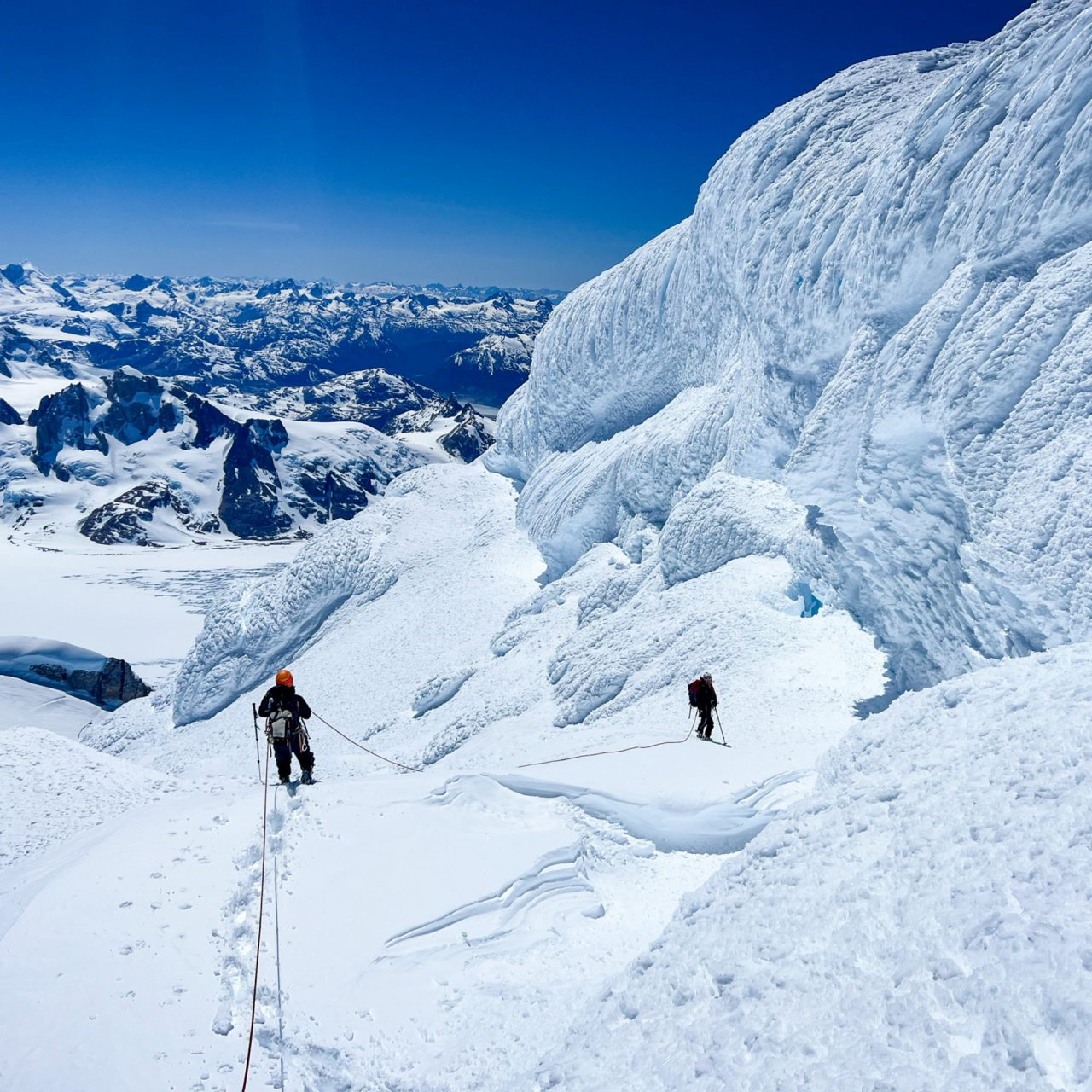 Tres instructoras de la escuela NOLS que tienen mucho kilometraje explorando, guiando y rebotando en estos mismos terrenos, que para la Rebe han sido su sala de clases: “Desde 2014 me he curtido ahí. Es como el patio de mi casa, a veces siento que no tengo que ir a otro país o viajar tan lejos para tener ese tipo de experiencia”, dice la escaladora y montañista que a pesar de haber ido recientemente de esta expedición ya quiere volver. “Las condiciones son duras, pero me quiero seguir metiendo todo el rato”, agrega y recuerda las alucinantes vistas desde la cumbre al océano Pacífico y a las otras altas cumbres de la Patagonia como el San Valentín y el San Lorenzo.