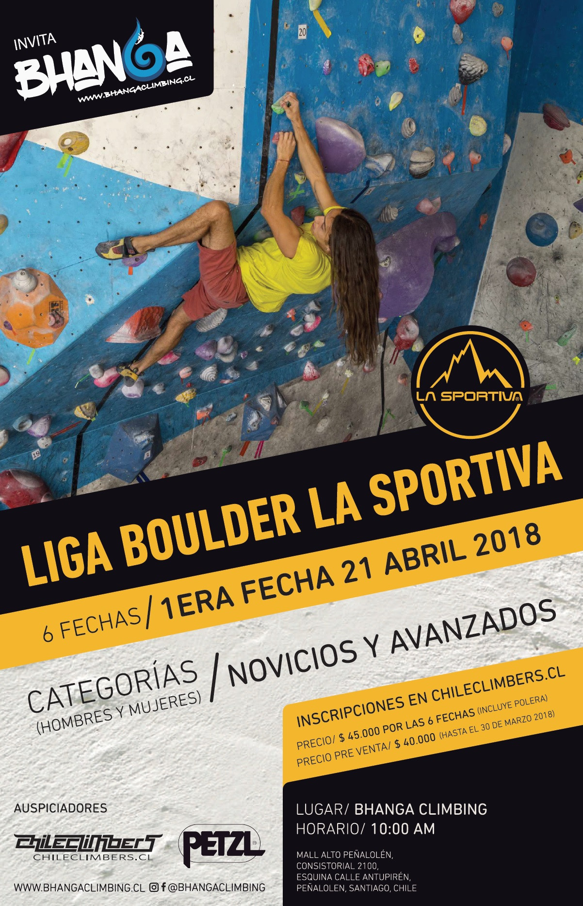 La inscripción incluye una polera, la cual se entregará en la primera competencia el 21 de Abril en Bhanga Climbing.
